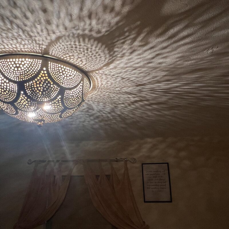 Elevate the ambiance of your living space with our exquisite Handcrafted Moroccan Brass Flush Ceiling Light. Meticulously crafted, this stunning piece blends traditional Moroccan design with modern elegance to bring a touch of sophistication to any room.